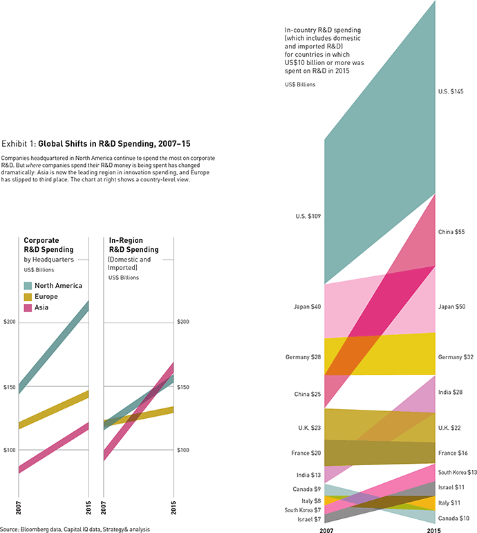 Asia is now the top regional destination for R&D spending, followed by North America and Europe. See also Interactive: Where Companies Spend Their R&D Money.